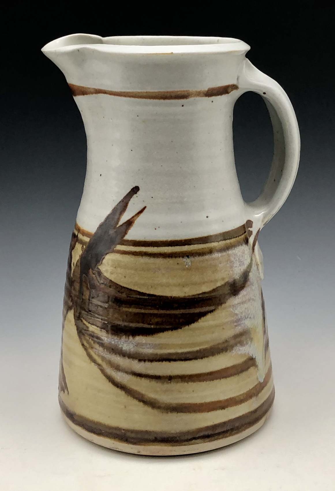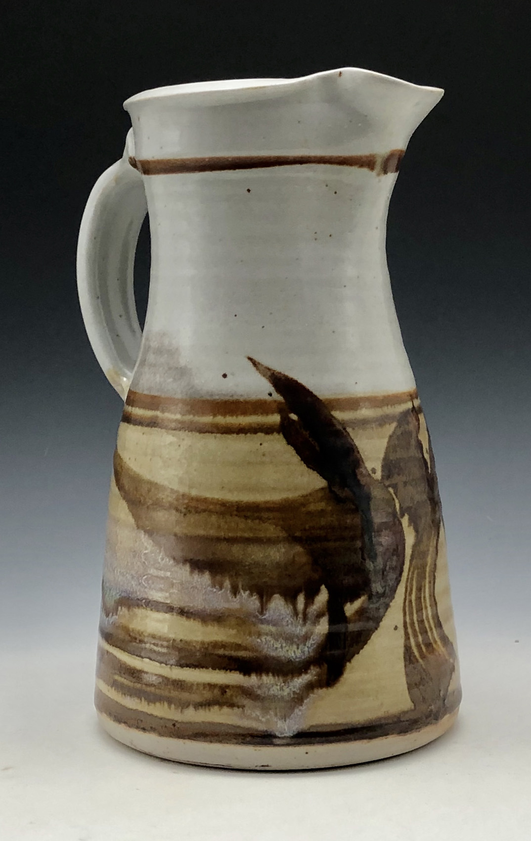 Robin Hopper, Two-toned jug with iron brushwork design.6.5” x 10” tall. (16.5 x25.5 cm)